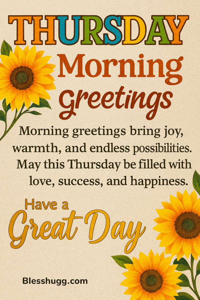 Let your Thursday begin with good morning, Thursday blessings, and the warm light of God’s grace. Feel Thursday joy wrap around your spirit. Let Thursday’s peace calm your heart. Good morning, Thursday blessings give you courage to face the day. They inspire kindness, gratitude, and love. Make this a blessed Thursday filled with happiness. Share your good morning, Thursday blessings, and watch smiles bloom everywhere you go.